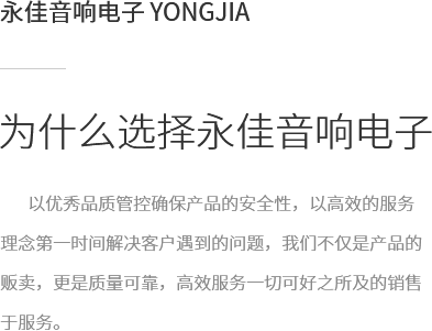 拉薩永佳音響電子有限公司 拉薩永佳音響電子有限公司坐落于美麗富饒的圣城拉薩,公司前身為拉薩昊成音響電子銷(xiāo)售有限公司,注冊(cè)資金為300萬(wàn)元,成立于2010年3月公司地址位于西藏拉薩市貢布塘南側(cè)1號(hào)薩博廣場(chǎng)4-5、4-8號(hào)。拉薩永佳音響電子有限公司主營(yíng)專(zhuān)業(yè)舞臺(tái)音響設(shè)備、會(huì)議音響系統(tǒng)設(shè)備、公共廣播音響系統(tǒng)設(shè)備、網(wǎng)絡(luò)及監(jiān)控設(shè)備、多媒體教學(xué)設(shè)備、多媒體投影機(jī)、幕布、弱電線(xiàn)材、辦公設(shè)備、LED液晶顯示屏品種齊全、服務(wù)效率、拉薩